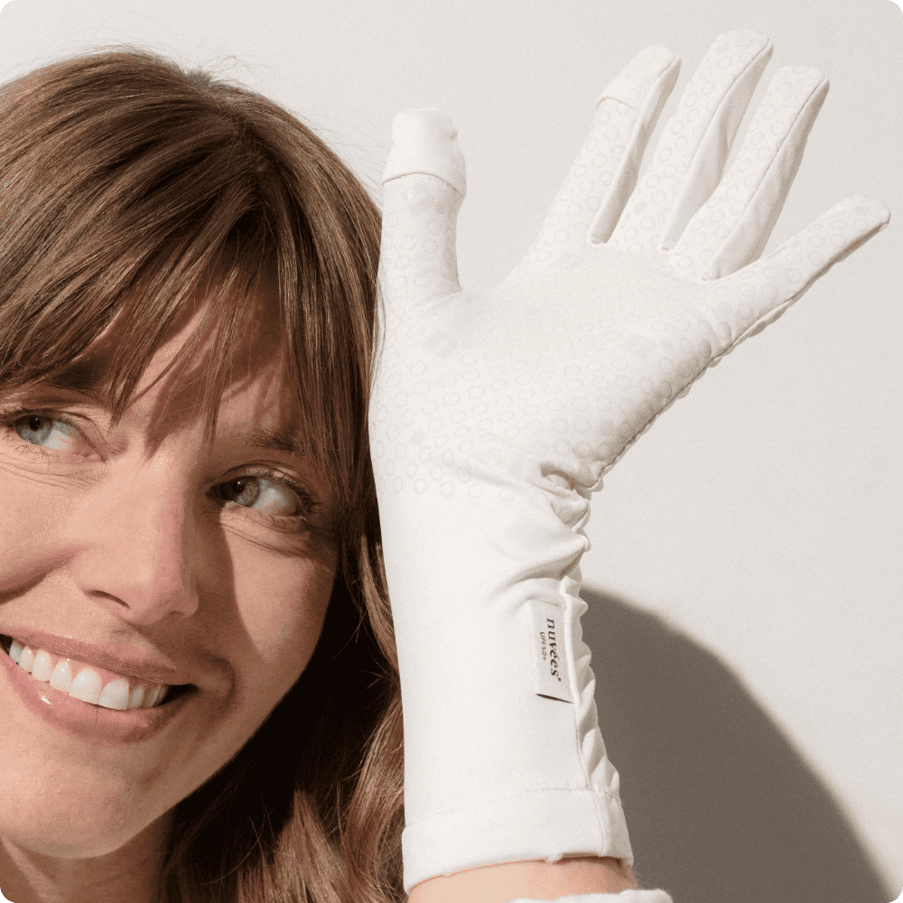 Dessa handskar täcker helt händer och handleder, för ett effektivt solskydd av dessa känsliga områden.